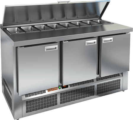Страна Россия Напряжение, В. 220 Мощность, кВт/ч. 0,22 Назначение для салатов В наличии Нет Модель SLE1-111SN Длина, мм 1485 Ширина, мм 600 Высота, мм. 850 Темп. режим, °C +2...+10 Управление электронное Артикул пр-ля 283992 Тип среднетемпературный Материал рабочей поверхности н.сталь Объем, л. 320 Охлаждение динамическое Материал корпуса н.сталь Доступ с одной стороны Кол-во полок 3 Кол-во дверей 3 Расположение агрегата нижнее Замок опция Открывание дверей распашные Тип столешницы GN встроенные Борт 50 Количество GN в столешнице 8 Крышка стальная Размер полок, мм 430х325 Оттайка автоматическая Материал дверей глухие Стандарт GN в столешнице GN 1/3 -