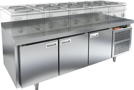 Стол охлаждаемый / шеф-база HICOLD GN 111/TN LT предназначен для установки на него теплового оборудования, такого как грили, фритюрницы, макароноварки и т.д. Выполнен полностью из нержавеющей стали AISI 304.