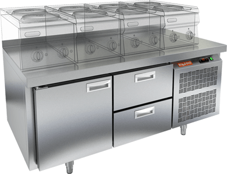 Стол морозильный / шеф-база HICOLD GN 12/BT LT предназначен для установки на него теплового оборудования, такого как грили, фритюрницы, макароноварки и т.д. Выполнен полностью из нержавеющей стали AISI 304.