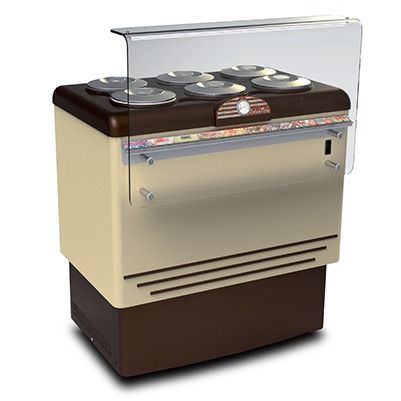 Витрина для мороженого FRAMEC DOLCE VITA 6 используется на предприятиях общественного питания и торговли для демонстрации и хранения мороженого, сорбета и йогурт-мороженого.
