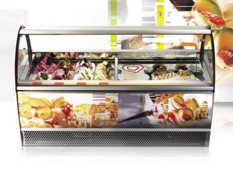 Витрина для мороженого ISA Millennium SP 12 A- вентилируемое охлаждение. Компрессор – встроенный, герметичного типа, повышенной мощности (тропическое исполнение, климатический класс 4+) или выносной. Электронный блок управления со стороны продавца, цифровой термометр в рабочей зоне. Размораживание осуществляется методом «обращения цикла», обеспечивающим минимальные продолжительность размораживания и скачок температуры.