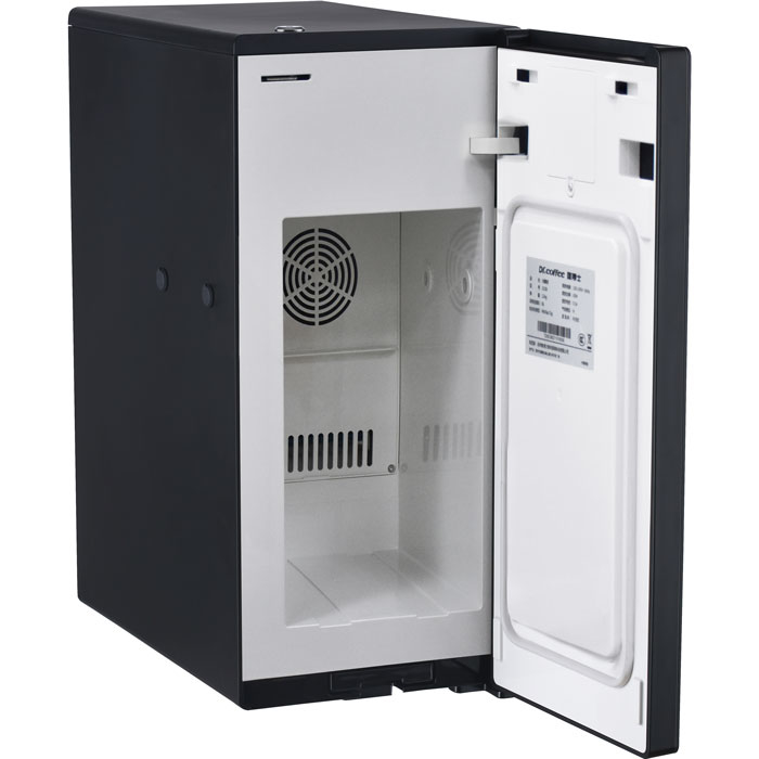 - компактный размер (47 × 47 × 24 см) и небольшой вес (12 кг), позволяющие разместить холодильник рядом с кофемашиной