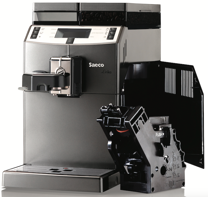 Кофемашина Saeco Lirika One Touch Cappuccino V4 профессиональная автоматическая с автокапучинатором OTC для офисов, гостиниц, небольших кафе и ресторанов и других предприятий сферы HoReCa. 5 видов напитков. Три степени помола. Рассчетная производительность: до 20 человек или 50 чашек.