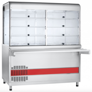 Abat ПВВ(Н)-70КМ-С-03-НШ (21000001023) прилавок-витрина для холодных блюд с охлаждаемой ванной под гастроемкости (GN). Элемент линии раздачи Аста. Предназначен для раздачи и хранения третьих блюд. Габариты: 1500x705(1030)x1721 мм, 3 полки, подсветка, нейтральный шкаф.