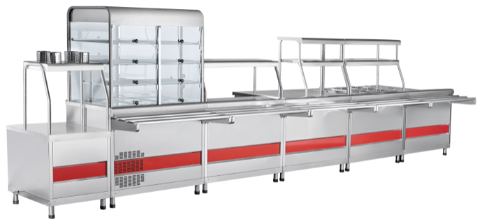 Прилавок-витрина для холодных блюд Abat ПВВ(Н)-70КМ-С-03-НШ (21000001023) с охлаждаемой ванной. Предназначен для раздачи и хранения третьих блюд и охлажденных напитков в ресторанах и столовых работающих по системе самообслуживания, отдельно или в составе линии раздачи блюд Abat Аста.