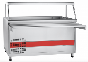 Abat ПВВ(Н)-70КМ-03-НШ (21000802823) прилавок открытый для холодных блюд с охлаждаемой ванной для гастроемкостей (GN). Элемент линии раздачи Аста. Предназначен для раздачи и хранения третьих блюд. Габариты: 1500x705(1030)x1244 мм, 1 полка, подсветка, нейтральный шкаф.