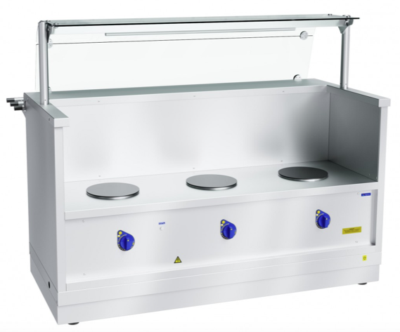 Мармит для первых блюд Abat ПМЭС-70Х-01 нерж (21000002758) трехконфорочный для хранения первых и вторых блюд в наплитной посуде, в горячем виде и для раздачи их потребителям в ресторанах и столовых работающих по системе самообслуживания, отдельно или в составе линии раздачи блюд Abat Hot-Line.
