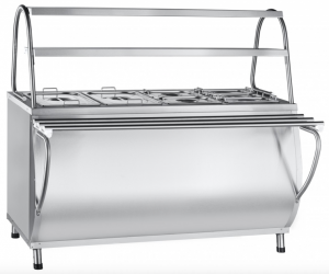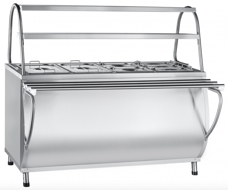 Abat ЭМК-70М-01 (21000180345) мармит вторых блюд паровой для гастроемкостей (GN). Элемент линии раздачи Abat Патша. Габаритные размеры: 1500x808(1036)x1364 мм. 2 полки, подсветка, нейтральный шкаф.