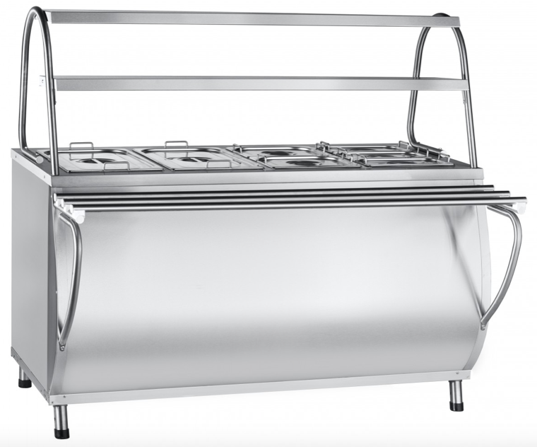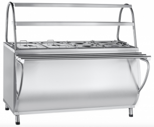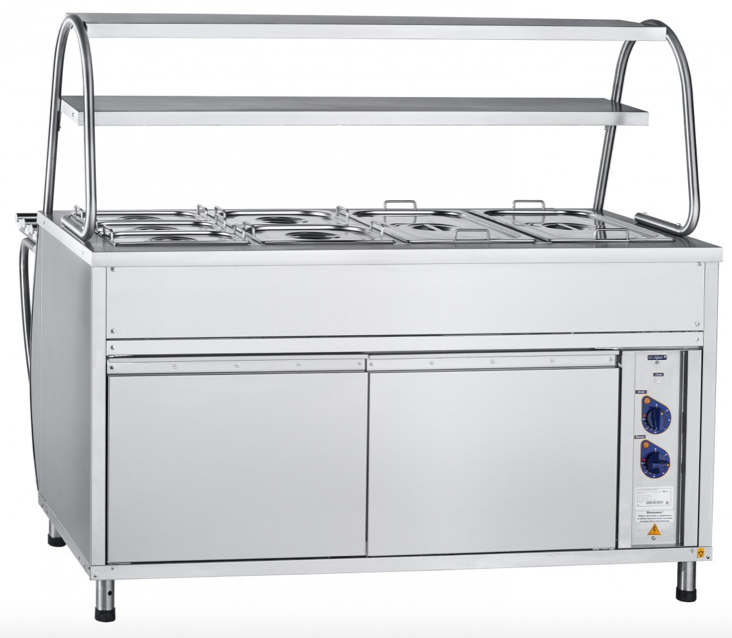 Abat ЭМК-70МШ (21000002526) мармит вторых блюд паровой. Элемент линии раздачи Abat Патша. Габаритные размеры: 1500x808(1036)x1364мм. 2 полки, подсветка, подогреваемый шкаф.