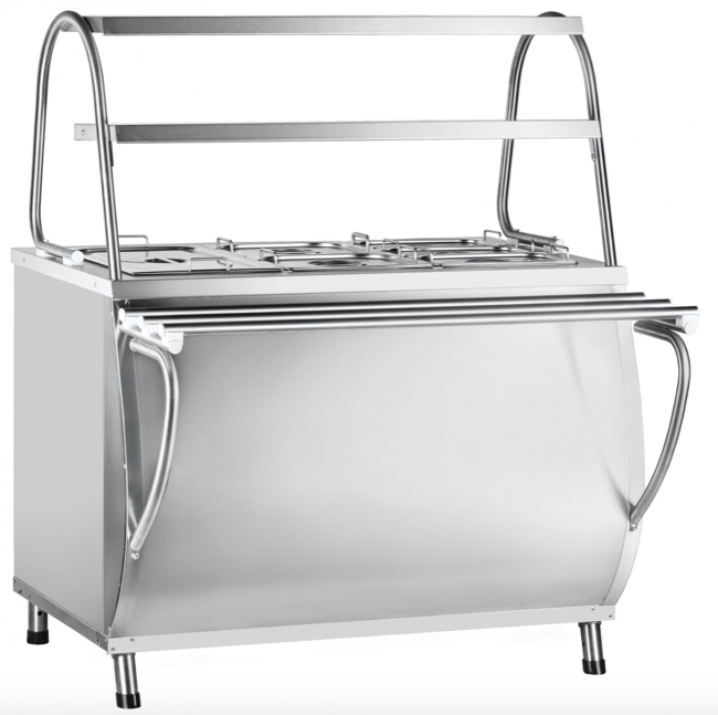 Мармит вторых блюд паровой Abat ЭМК-70М (21000180343) предназначен для хранения первых и вторых блюд в гастроёмкостях, в горячем виде и для раздачи их потребителям в ресторанах и столовых работающих по системе самообслуживания, отдельно или в составе линии раздачи блюд Abat Патша. Внизу находится нейтральный шкаф, для хранения посуды и инвентаря.