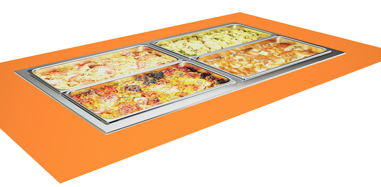 Мармит вторых блюд водяной, без полки. Мощность 2 кВт. Вмещает две GN 1/1 глубиной 150 мм.