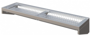 Полка открытая настенная предназначена для размещения, хранения и сушки в естественных условиях стандартных суповых и десертных тарелок различных диаметров. Вместимость - 38 тарелок. Полка выполнена из оцинкованной стали. На полку установлена решетка из окрашенной стали и поддон для сбора стекающей с тарелок жидкости. Крепеж полки на стенку входит в комплект поставки.