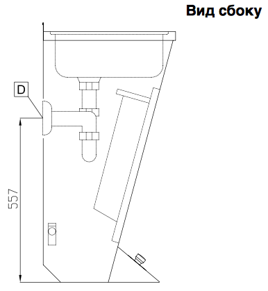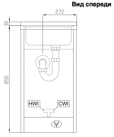 - Смеситель (диам. ½") и слив.