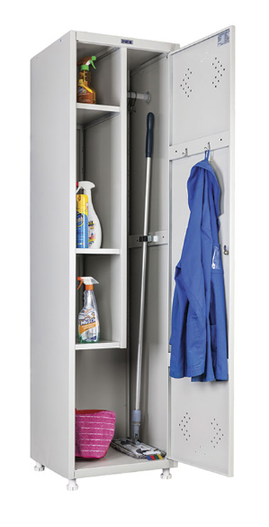 Шкаф для уборочного инвентаря МеталСити ПРАКТИК LS 11-50 предназначен для хранения рабочей одежды и хоз.инвентаря.