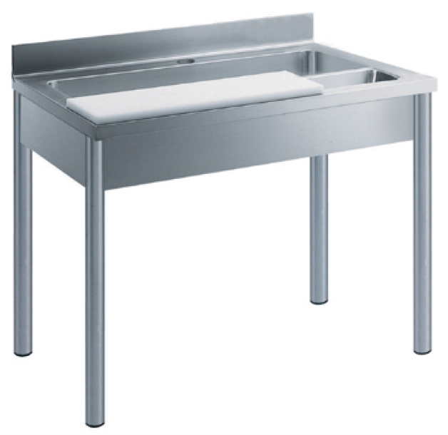 Стол для обработки/мойки овощей Electrolux 133590 (TLV1210E) с пластиковой доской для резки, ванной 1070x320x180 мм, отверстием для сброса отходов, бортик 100 мм, 1200мм