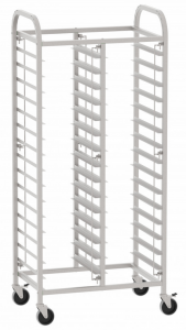 Тележка-шпилька для противней ТШГ-15х2 является вспомогательным оборудованием для предприятий общественного питания и используется для установки и транспортировки до 30 противней размером 320х435 мм, используемых в конвекционных печах Abat ПКЭ-4Э. Тележка используется для транспортировки по цеху заготовок, а также транспортировки и кратковременного хранения противней с готовой продукцией. Может использоваться в обеденных залах для сбора и транспортировки подносов с грязной посудой.