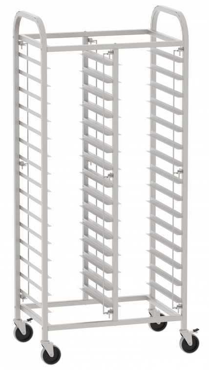Тележка-шпилька Abat ТШГ-15х2 (21000005760) для противней размером 320х435 мм для кафе, ресторанов, столовых, пекарен, фабрик-кухонь, кулинарий и других предприятий общественного питания и торговли работающих с тепловым оборудованием (печами) стандарта 320х435 мм. Двухсекционная, с загрузкой 30 противней (2х15).