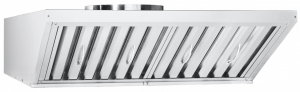 - Разогретый воздух, насыщенный парами масла, жира и воды, всасывается осевым вентилятором в зонт, проходит сквозь фильтр и удаляется из помещения очищенным.