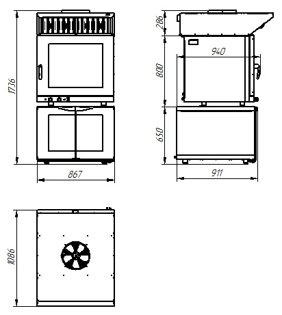 - Зонт ЗВВ-6-6/4 устанавливают на конвекционную печь КЭП-6 и подсоединяют к конвекционной печи с помощью кабеля питаня (2 м, с заземлением).