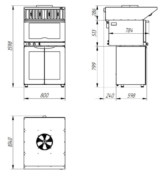 - Зонт ЗВВ-4-6/4 устанавливают на конвекционную печь КЭП-4 и подсоединяют к конвекционной печи с помощью кабеля питаня (2 м, с заземлением).