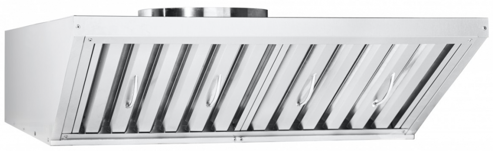 - Разогретый воздух, насыщенный парами масла, жира и воды, всасывается осевым вентилятором в зонт, проходит сквозь фильтр и удаляется из помещения очищенным.
