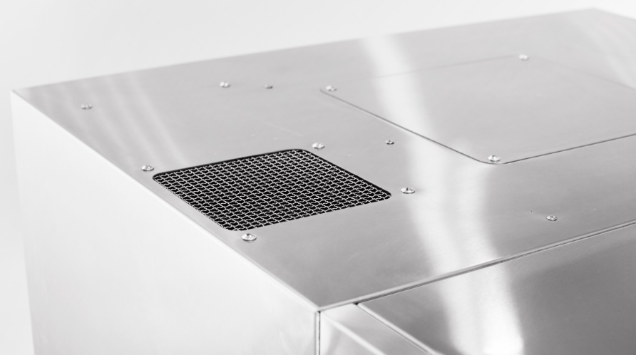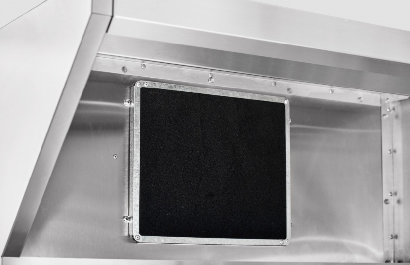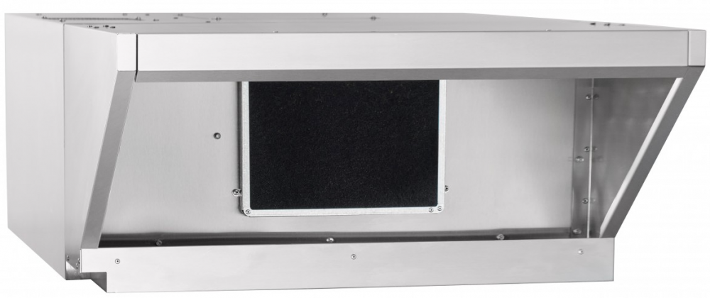В каркасе теплообменника установлен слот с теплообменником, угольные и лабиринтные фильтры и всасывающий вентилятор. Зонт подсоединяется к конвекционной печи с помощью кабеля питания (1,8 м с заземлением) и фиксируется с помощью двух винтов (от КЭП) к задней стенке и спереди двумя болтами к крыше конвекционной печи.