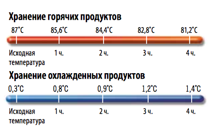 - Теплоизоляция: пища остается горячей или холодной в диапазоне температур от -40 до +120С.