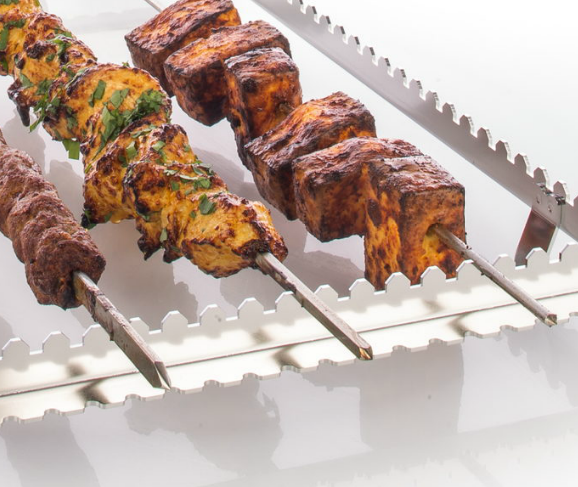 Вертелы для гриля и тандури прекрасно подходит для приготовления любых блюд на вертеле. Mясо или птица кусками, рыба целиком или филе – любые блюда идеально готовятся на соответствующих вертелах. Изготовленные из высококачественной нержавеющей стали рама вертела и вертелы отличаются высокой прочностью, их удобно мыть в посудомоечной машине.