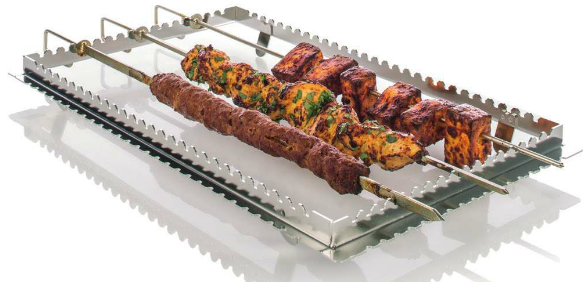 Вертелы для гриля и тандури прекрасно подходит для приготовления любых блюд на вертеле. Mясо или птица кусками, рыба целиком или филе – любые блюда идеально готовятся на соответствующих вертелах. Изготовленные из высококачественной нержавеющей стали рама вертела и вертелы отличаются высокой прочностью, их удобно мыть в посудомоечной машине.
