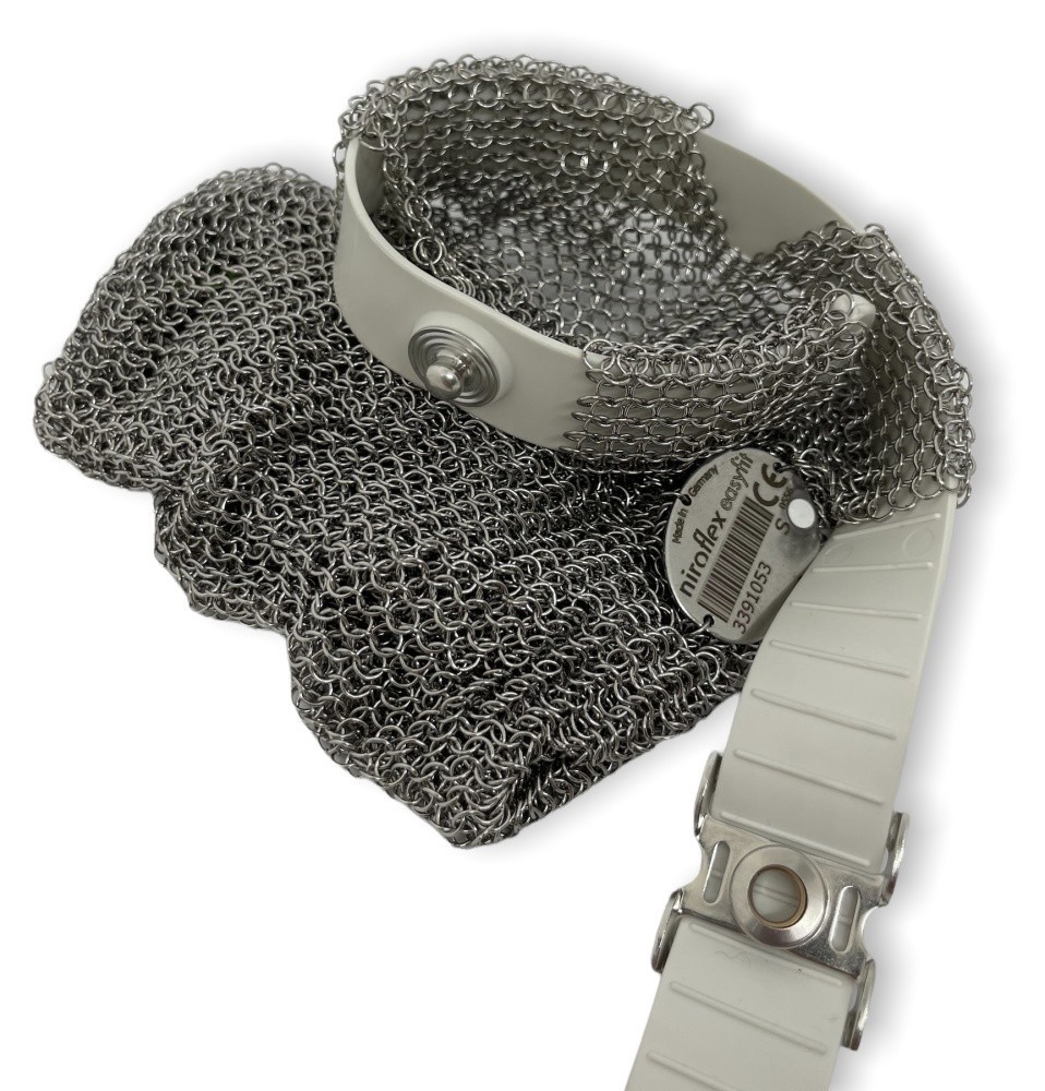 Заменяемый ремешок с пряжкой из эластичного термополиуретана (ТПУ) и оптимальные гигиенические свойства. Гибкие пластиковые звенья для обеспечения наилучшего комфорта при ношении. Простая и быстрая смена ремешка без использования инструментов. Кольчужные перчатки nirofl ex проверены в соответствии с нормами DIN EN 1082-1 / DIN EN 14328 / DIN EN 1811