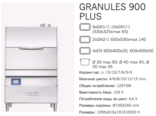 Технические параметры Dihr Granules 900 Plus XP