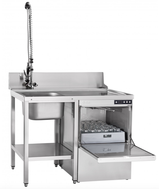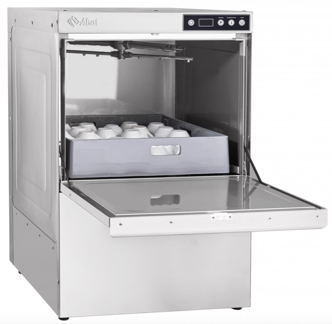 Машина посудомоечная Abat МПК-500Ф-01-230 (71000006042) производительностью 500 тарелок в час предназначена для мытья тарелок, стаканов, столовых приборов, подносов, чашек с применением жидкого моющего и ополаскивающего средства, в кафе, барах, ресторанах, столовых и других предприятиях общественного питания и торговли.