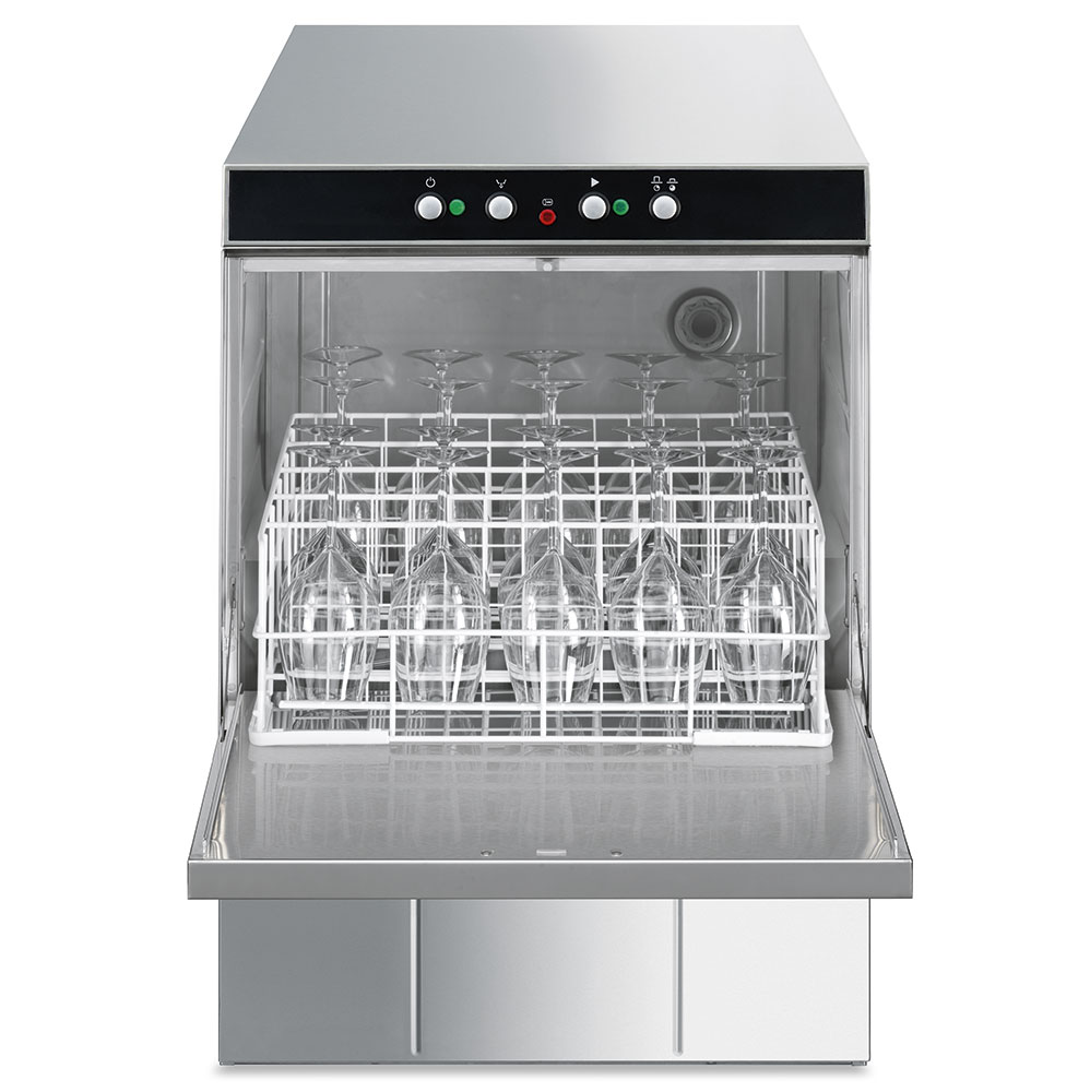 Посудомоечная машина Smeg SPD500 серии Ecoline профессиональное оборудование фронтального типа для предприятий общественного питания и торговли: ресторанов, кафе, столовых, гостиниц, кейтеринговых служб и пищевых производств. Модель предназначена для эффективной мойки тарелок, чашек, стаканов, столовых приборов, а также противней и гастроёмкостей, сочетая надёжность конструкции, экономичность эксплуатации и удобство ежедневного обслуживания.