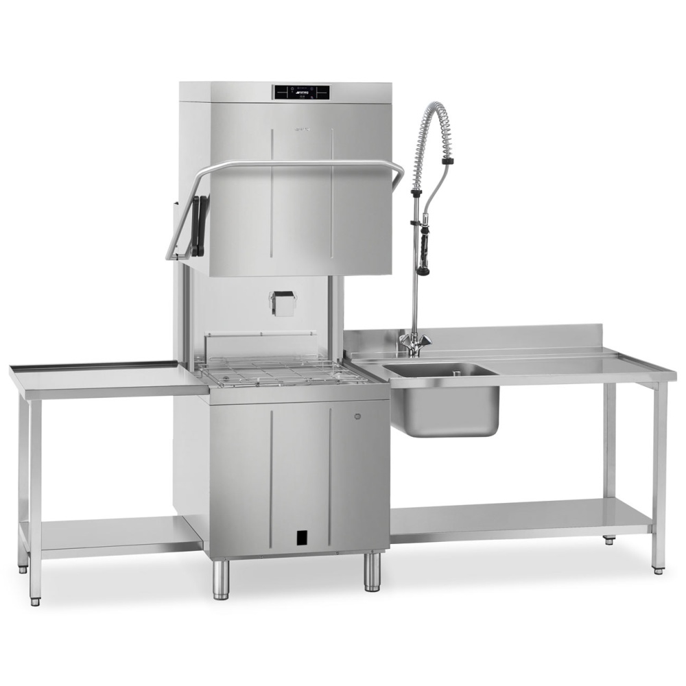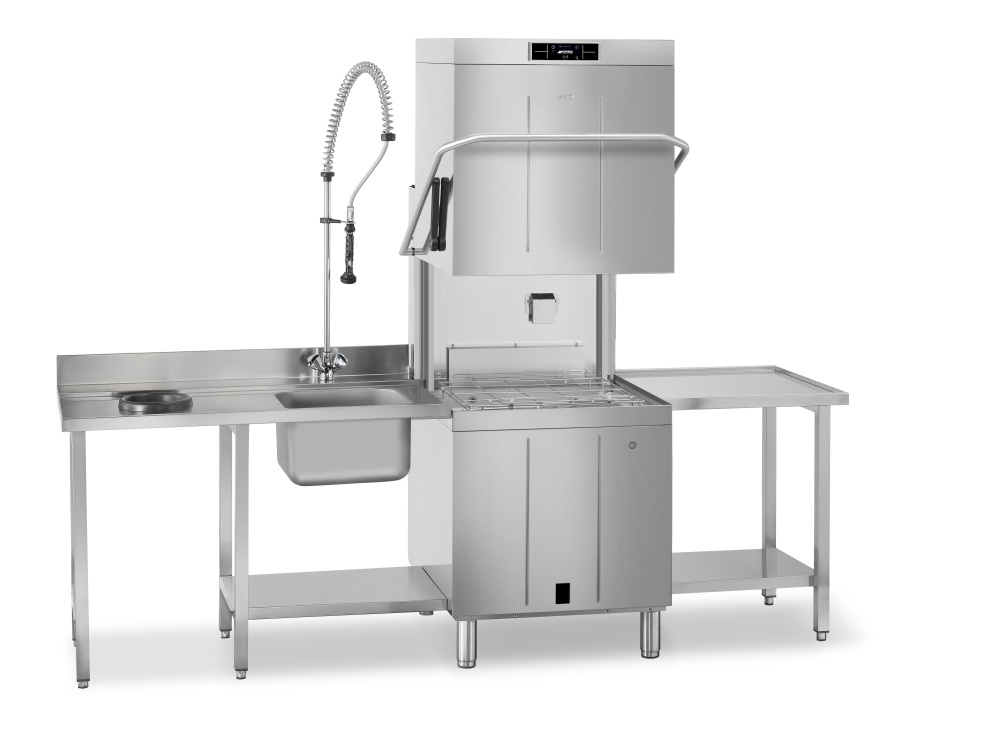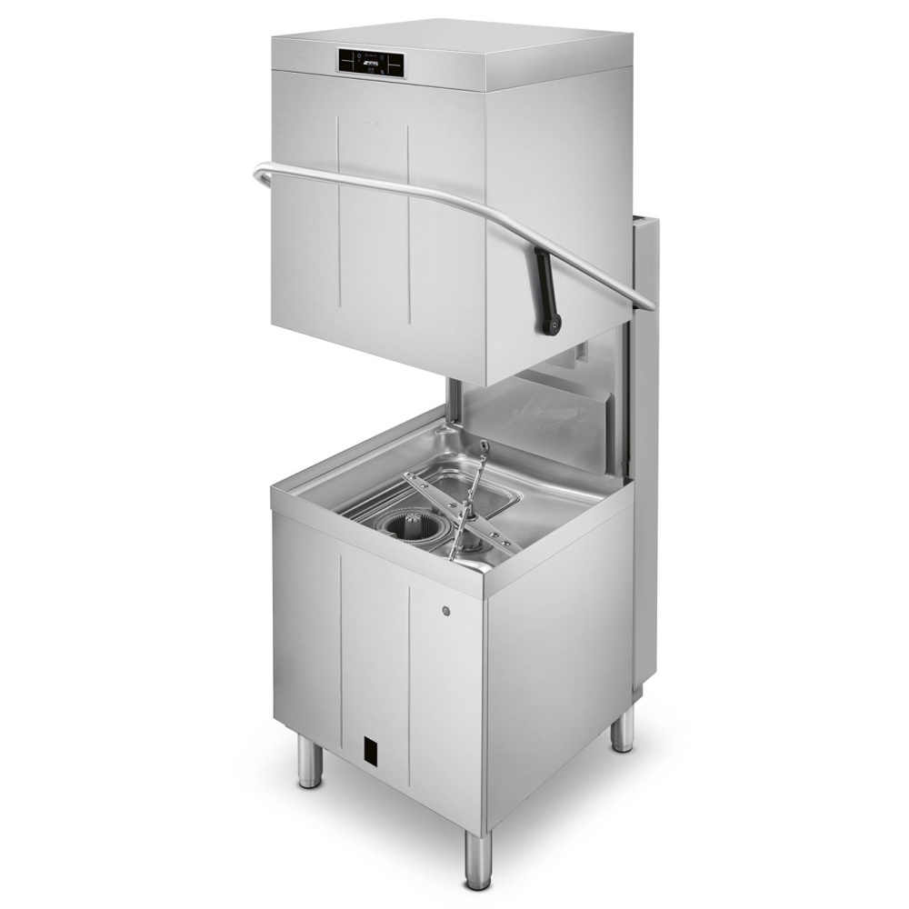 Посудомоечная машина Smeg SPH625S серии PURA купольное профессиональное оборудование для предприятий общественного питания и торговли: ресторанов, кафе, столовых, гостиниц, кейтеринговых служб и пищевых производств. Модель эффективно справляется с мойкой и термодезинфекцией разнообразной посуды - тарелок, стаканов, чашек, бокалов, столовых приборов, а также противней и гастроёмкостей GN 1/1, сочетая высокую производительность, энергоэффективность и удобство ежедневного обслуживания.