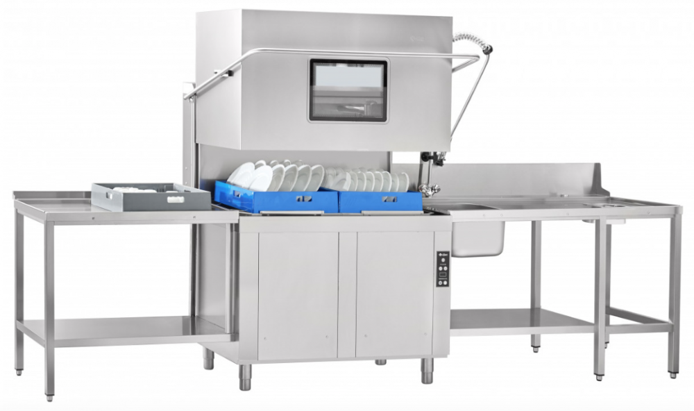 - Возможна установка раздаточных столов спереди посудомоечной машины (при стыковке к правому борту машины предмоечных столов).