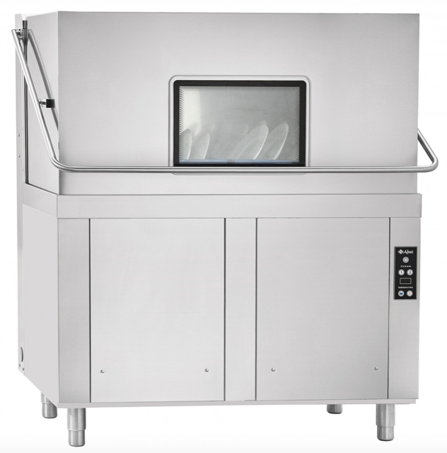 Машина посудомоечная Abat МПК-1400К (71000008574) профессиональная купольная, с дозаторами ополаскивающих и моющих средств, для мытья тарелок, стаканов, столовых приборов и подносов в кафе, ресторанах, столовых и других общепитах. Моечная камера на одновременную загрузку двух кассет. Размер кассет: 500х500мм. Две программы мойки: 80 и 140 секунд. Смотровое окно в куполе. Напряжение 380В, 20,5 кВт.