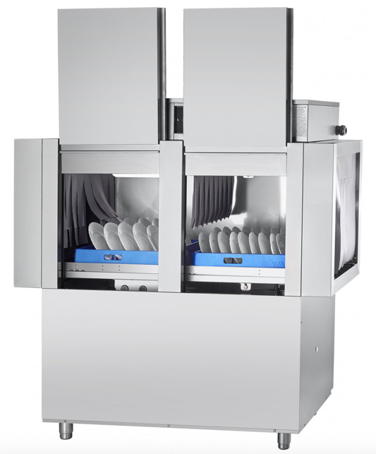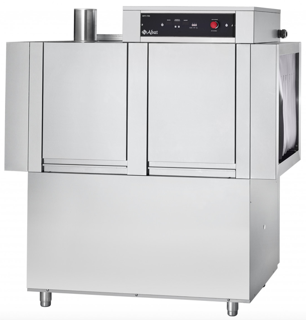 Машина посудомоечная Abat МПТ-1700 левая (артикул 71000008601) промышленная посудомоечная машина туннельного типа (конвейерная), с дозаторами ополаскивающих и моющих средств, для мытья тарелок, стаканов, столовых приборов и подносов в кафе, ресторанах, столовых и других общепитах. Движении посуды слева направо. Размер кассет: 500х500мм. Три программы мойки. Производительность кассет/тарелок - 95 / 1710 в час. Напряжение 380В, 26,5 кВт. Подключение к горячей воде.