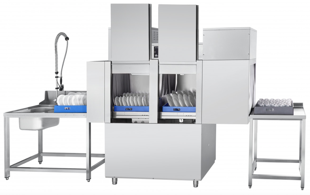 Машина посудомоечная Abat МПТ-2000 левая (71000007051) с теплообменником и модулем сушки, предназначена для мытья тарелок, стаканов, чашек, столовых приборов ресторанах, столовых, фабриках кухнях и других предприятиях общественного питания и пищевых производствах. Выпускается в правом (движение посуды справа налево) и левом (движении посуды слева направо) исполнении.