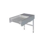 Натяжная секция представляет собой неотъемлемую часть транспортера, предназначенную для натяжения рабочего полотна. Этот модуль состоит из корпуса, выполненного из оцинкованной стали и облицованного нержавеющей сталью, натяжных шестеренок, каркаса, а также поддона, предназначенного для сбора остатков пищи попадаемых на полотно. Натяжная секция оснащена кнопкой выключения транспортера.