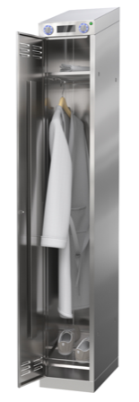 - Панель управления шкафом включает в себя: Регулятор температуры воздуха внутри шкафа; Таймер для автоматизации дезинфекции одежды; Лампа индикации включения ТЭНа; Смотровое окно для визуального контроля исправности бактерицидной лампы.