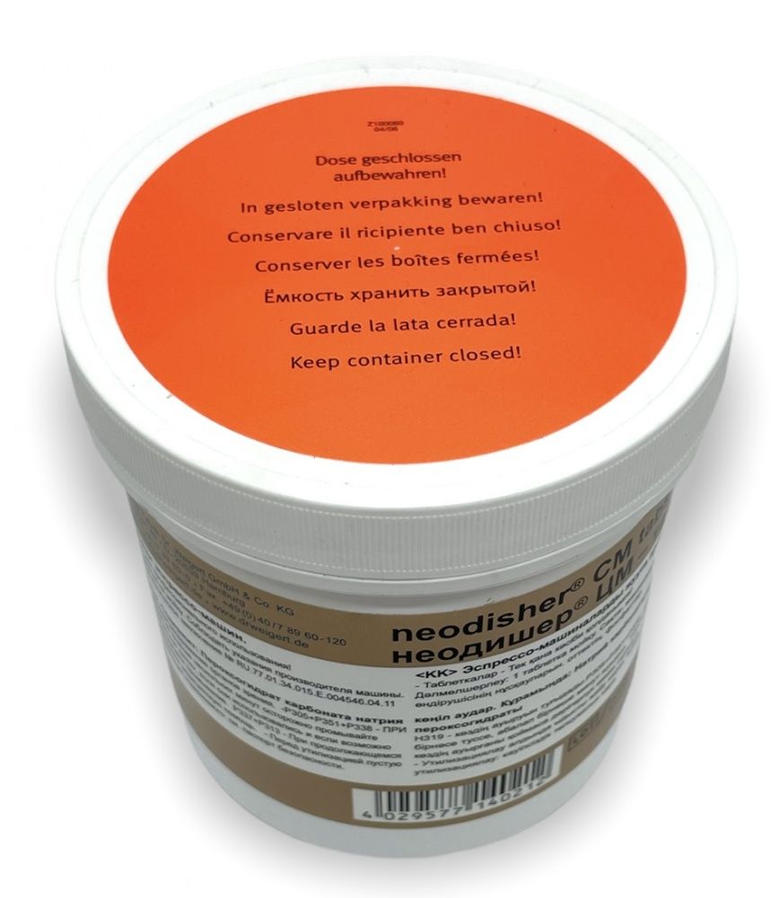 Моющее средство в таблетках для эспрессо-машин Dr. Weigert Neodisher® CM Tabs / Неодишер® ЦМ таблетки. Для профессионального использования. Neodisher® CM Tabs удаляет остатки кофе, масел, воска, танинов и других тяжело выводимых загрязнений. Объем: 0,4 кг., 200 таблеток (по 2 гр.). Дозировка: 1 таблетка на мойку.