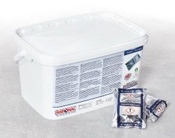 Таблетки 56.00.211 поставляются в ведрах, в индивидуальной фольгированной упаковке сине-серебристого цвета. Ведра пластиковые, прямоугольные, штабелируемые, с ручкой.