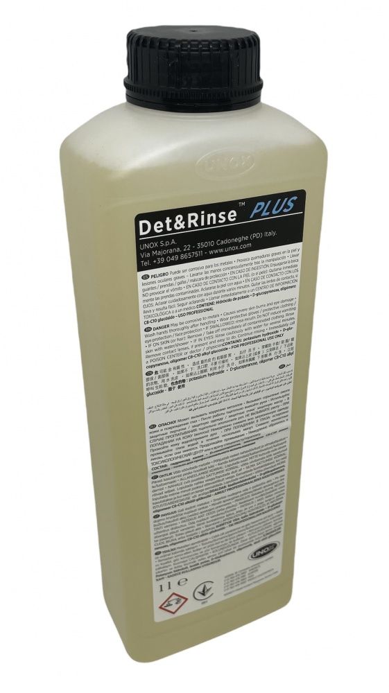 Средство Unox DB1015A0 (1 литр) моющее и ополаскивающее (2 в 1) Det&Rinse™ PLUS, для автоматической мойки пароконвектоматов Unox в кафе, ресторанах, столовых, пекарнях и других предприятиях общественного питания.