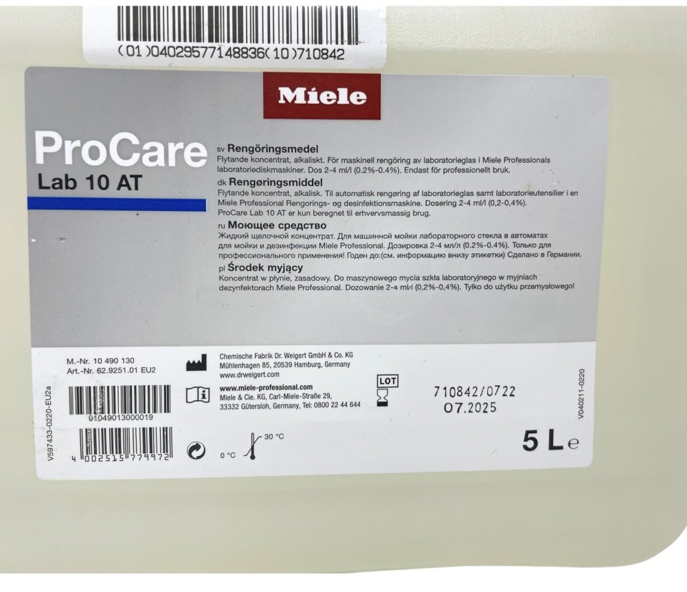Щелочное моющее средство Miele ProCare Lab 10AT-5l 62925101EU2