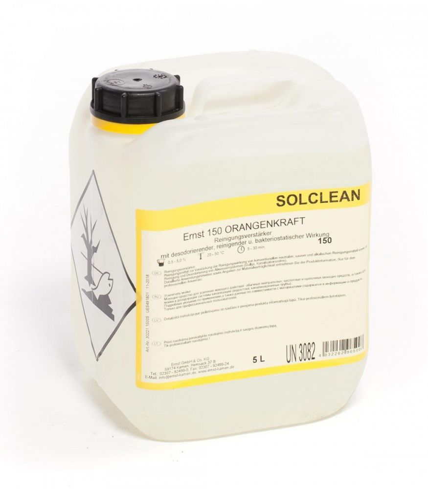 Solclean 150 — очень сильный суперконцентрат нейтрального моющего средства для канализаций, нейтрализатор запахов, усилитель действия моющих растворов. Применяется для прочистки канализации, труб и стоков от органических и неорганических загрязнений. Используется для очистки въевшихся пятен. Усиливает действие нейтральных, кислотных и щелочных моющих средств. Густой, пенный. С ярко выраженным запахом апельсина.