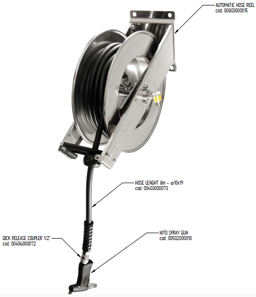 Душ на катушке Monolith SR000000001A (8 метров) - профессиональное душирующее устройство итальянского производства, разработанное для предприятий пищевой промышленности и общественного питания: ресторанов, кафе, столовых, пекарен и иных объектов. Изделие обеспечивает мобильную подачу воды в любую зону помещения, позволяя эффективно выполнять мойку оборудования, напольных покрытий и рабочих поверхностей.
