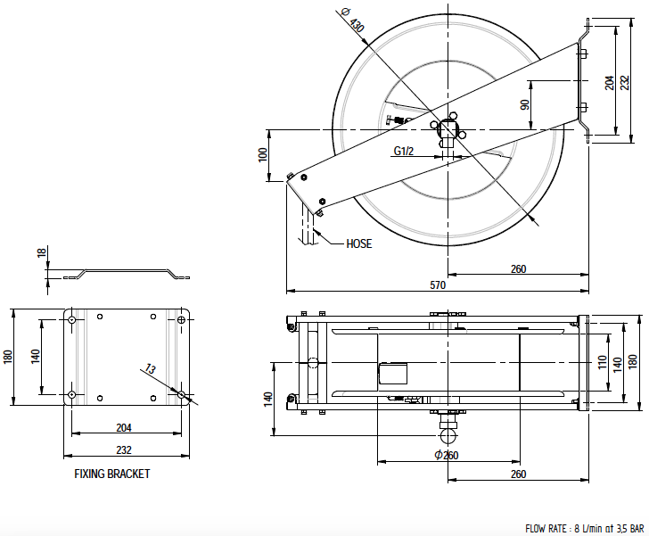 санитарной очистки рабочих зон, включая труднодоступные места. мытья крупногабаритного оборудования и напольных покрытий. подачи воды в удалённые участки помещения благодаря длине шланга 10 м.Технические характеристики Душа на катушке Monolith SR000000002A