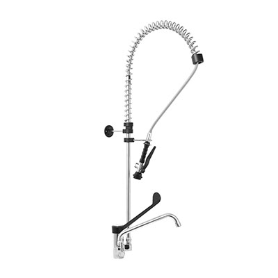 Смеситель с краном и душем Monolith R0201020249 - профессиональное сантехническое оборудование итальянского производства, разработанное для интенсивного использования на предприятиях общественного питания и торговли: в ресторанах, кафе, столовых, моечных цехах и иных объектах HoReCa. Устройство предназначено для предварительного ополаскивания - эффективного удаления крупных остатков пищи с кухонной посуды и инвентаря перед загрузкой в посудомоечную машину, а также для мытья фруктов, овощей и других продуктов в раковинах.