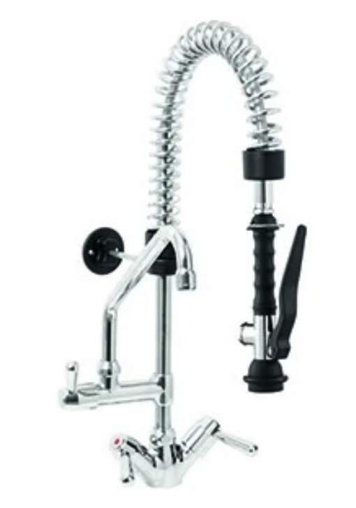 Душевая часть включает вертикальную стойку (трубу) с комплектом настенного крепления, гибкий шланг длиной 400 мм с внешней каркасной спиралью дугообразной формы и душевую лейку с прижимной рукояткой и фиксатором. Каркасная спираль предотвращает перегибы шланга, сохраняя его форму и обеспечивая удобство использования. Лейка спроектирована для точечного направления струи, что особенно важно при ополаскивании узких ёмкостей или труднодоступных участков посуды.Материалы исполнения подобраны с учётом жёстких условий эксплуатации. Корпус и основные компоненты изготовлены из нержавеющей стали и термопластика - это гарантирует устойчивость к коррозии, высоким температурам (до 70 °C) и агрессивным моющим средствам. Хромированное покрытие излива и элементов управления придаёт изделию эстетичный вид и упрощает очистку. Все материалы не содержат токсичных веществ и соответствуют санитарным требованиям для пищевого оборудования.