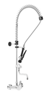Смеситель с краном и душем Monolith R0102010302 - профессиональное сантехническое оборудование итальянского производства, предназначенное для предприятий общественного питания и торговли. Устройство сочетает в себе кран для основного потока воды и душирующее приспособление, что делает его оптимальным решением для моечных зон на кухнях ресторанов, кафе, столовых, пекарен. Его ключевая задача - обеспечить эффективную мойку и предварительное ополаскивание посуды, кухонного инвентаря, а также фруктов и овощей перед дальнейшей обработкой. Технические параметры смесителя обеспечивают его совместимость с типовыми системами водоснабжения предприятий. Устройство монтируется на стену и требует двух монтажных отверстий.